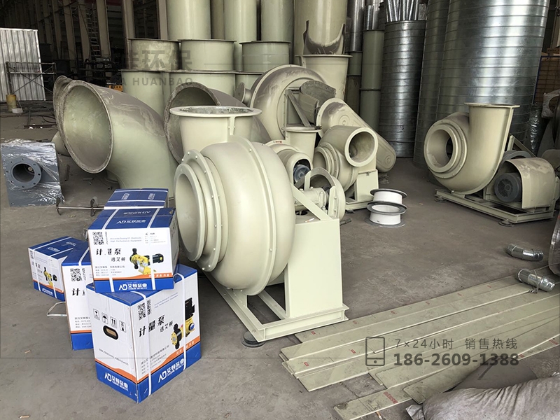 玻璃鋼離心風機(1)額定風量以10-45℃、濕度為65%為準,總絕對效率應不低于80%。風機的風量必須滿足臭氣處理量的要求,并應考慮5~10%的余量。(2)風機壓力滿足以下方面的壓力損失:考慮臭氣收集風管的管道風壓損失,除臭設備的自身風阻,