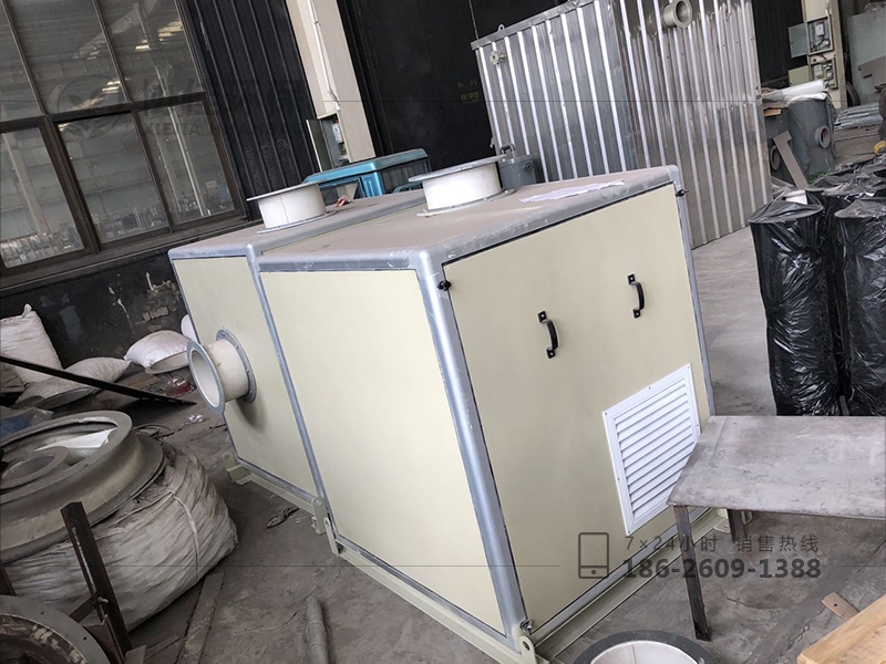 (5)風機應采用側吸式離心風機,以臥式安裝,與電機置于同一機座,滿足室外安裝,含風機、電動機、隔振墊、進出口補償器等。