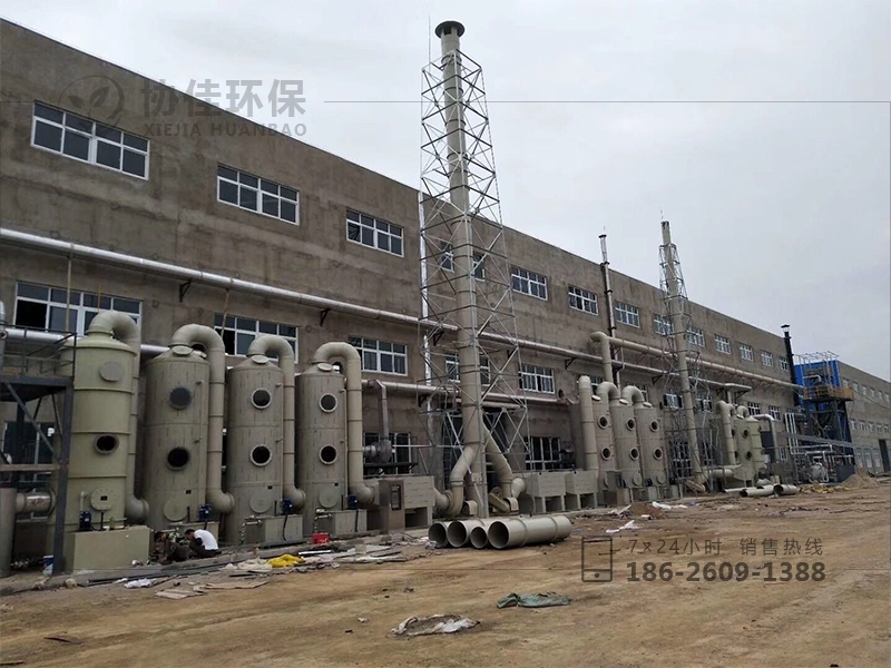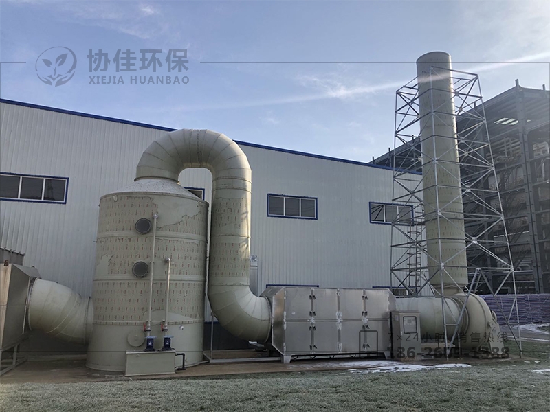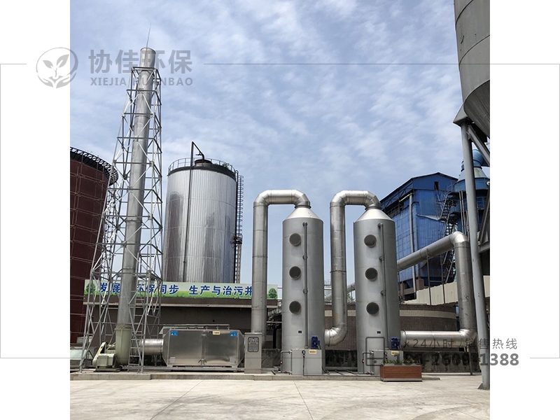 (4)噴淋段——在凈化塔的內部安裝的噴淋系統,在噴淋管道上安裝了霧化噴嘴,能保證廢氣與循環液接觸效果。