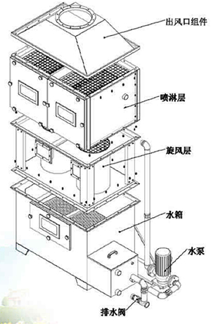 氣旋混動噴淋噴淋塔,是處理有害廢氣的主要設備。工作時,有害廢氣由塔底切向進塔,在塔板葉片的導向作用下使煙氣旋轉上升,并在塔板上將隨板下流的液體噴成霧滴,增大氣液間的接觸面積;液滴被氣流帶動旋轉,產生