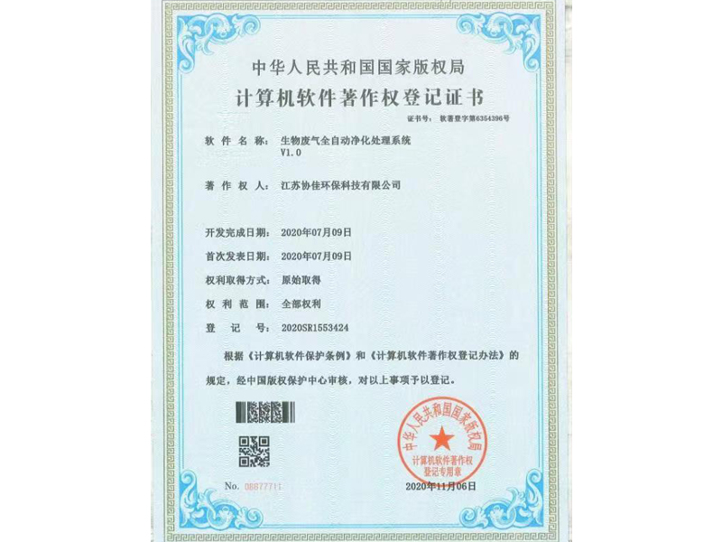 計算機軟件著作權登記證書-生物廢棄全自動凈化處理系統V1.0